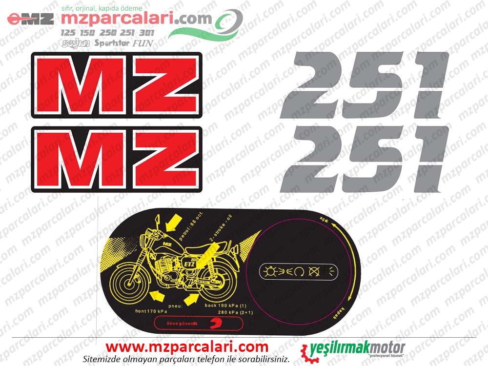 MZ 251 Etiket Takımı TİP 2 yedek parça online satış sitesi. Dünya'nın her yerine gönderim imkanı. Kredi kartı ile ödeme imkanı. Ayrıca dileyen kapıda nakit ödemeli sipariş verebilir.