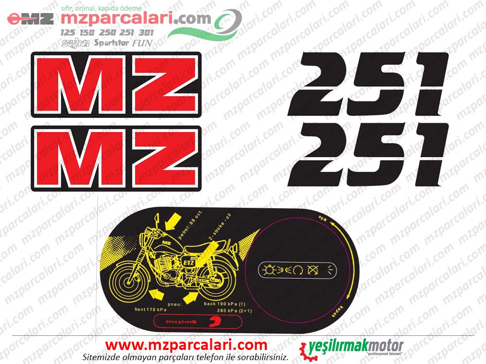 MZ 251 Etiket Takımı TİP 3 yedek parça online satış sitesi. Dünya'nın her yerine gönderim imkanı. Kredi kartı ile ödeme imkanı. Ayrıca dileyen kapıda nakit ödemeli sipariş verebilir.