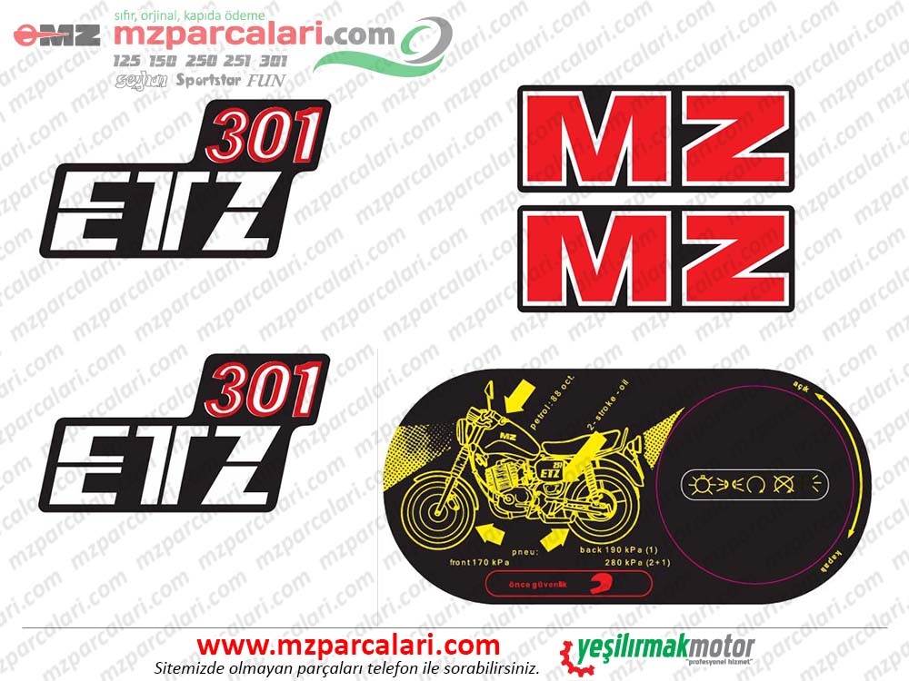 MZ 301 Etiket Takımı ETZ 301 Model - ESKİ MODEL yedek parça online satış sitesi. Dünya'nın her yerine gönderim imkanı. Kredi kartı ile ödeme imkanı. Ayrıca dileyen kapıda nakit ödemeli sipariş verebilir.